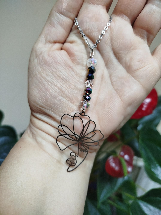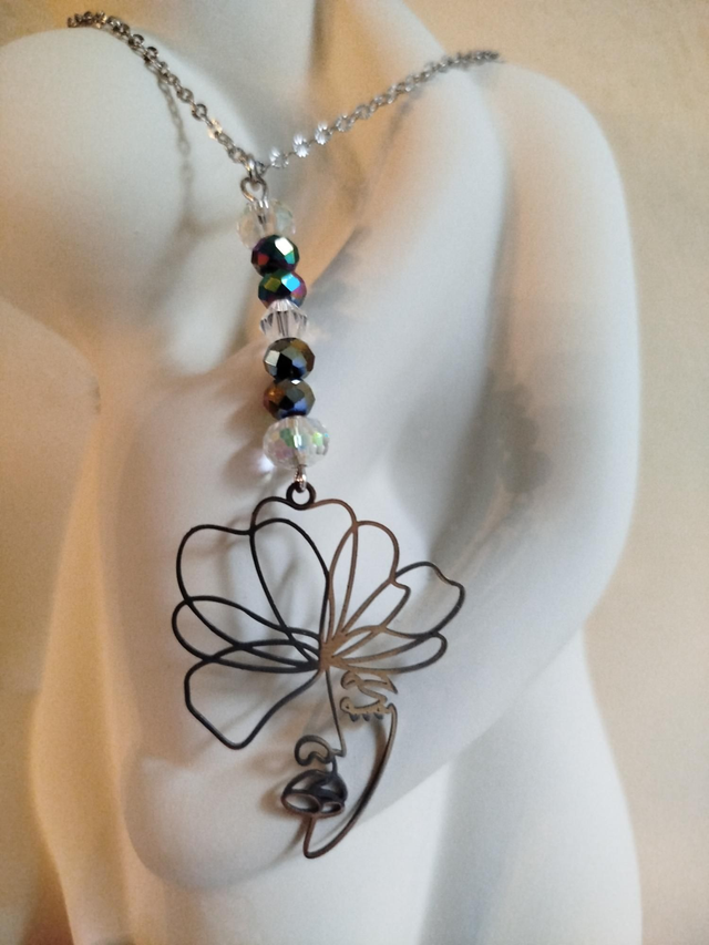 Minimaliste et magnétique, ce collier mêle un visage stylisé aux reflets métalliques à des perles grises et cristallines. Son éclat subtil capte la lumière sans jamais en faire trop. Une pièce contemporaine, à la frontière entre art et bijou.